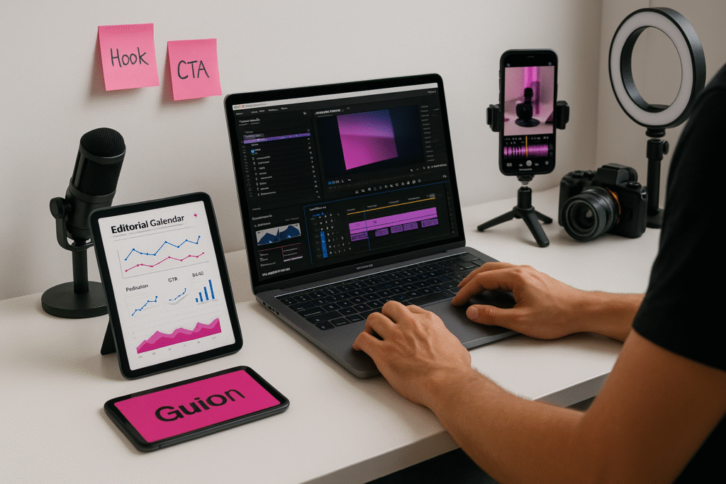 Estrategia primero: posicionamiento, pilares, buyer personas, hooks, CTAs, frecuencia y distribución. Luego las piezas.